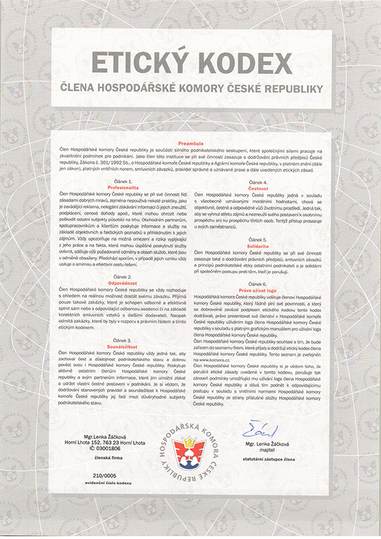 Firma Mgr. Lenka Žáčková je členem Hospodářské komory ČR